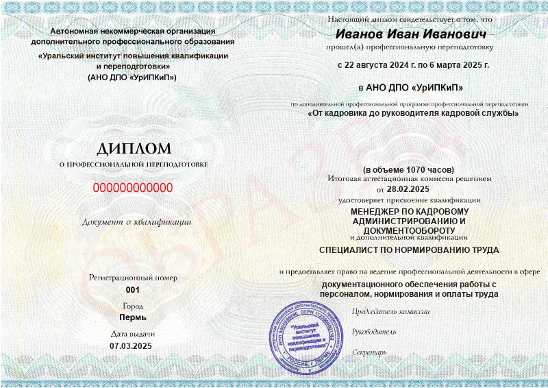 • 2 квалификации: Менеджер по кадровому администрированию и документообороту + Специалист по нормированию труда