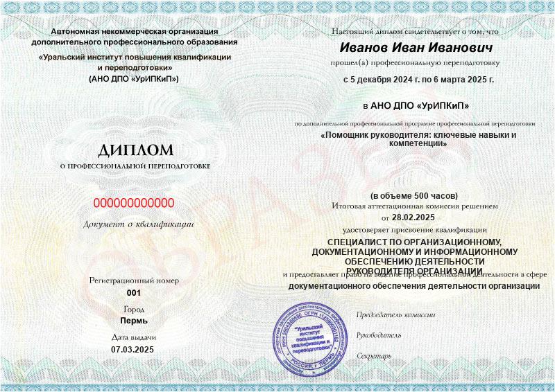 Да, дипломы и удостоверения оформляются в соответствии с действующим законодательством РФ. Документы печатаются на специальных бланках, заверяются печатью АНО ДПО «УрИПКиП».